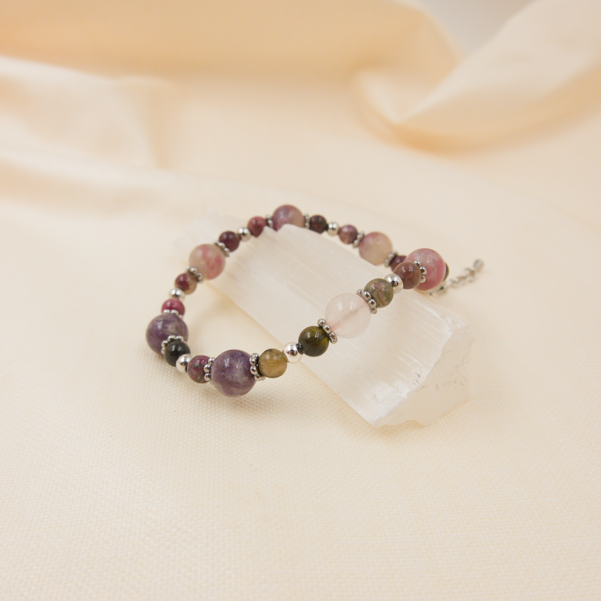 Feel a sense of catharsis and empowerment with our Unicorn Tourmaline bracelet. The Unicorn Tourmaline is a warm and powerful crystal that helps sooth emotions while purifying emotional blockages on the mind, body.